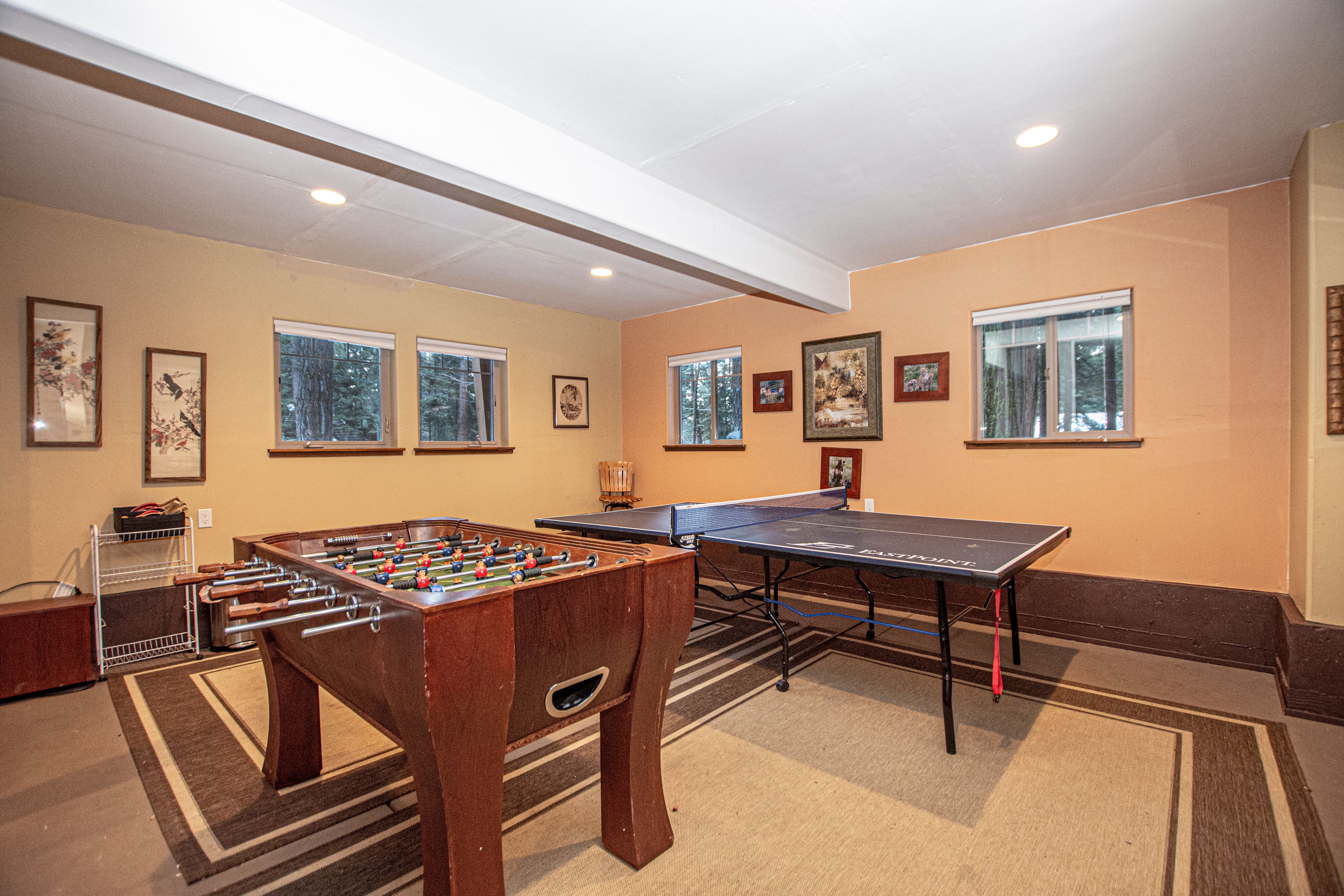 The Rec Room is equipped with a Ping Pong table and paddles as well as Foosball. Cross-country ski trails are accessible right out the back door!